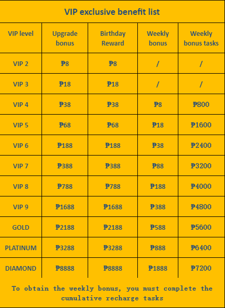 Weekly salary bonuses do not need to be applied. Automatic division system distributed every Monday at 00:00 Manila Time (GMT+8) Members who do not deposit bets this week will have their bonuses stopped distributed! Deposits and consecutive bets will be distributed the next time, Bonus revenue is X1